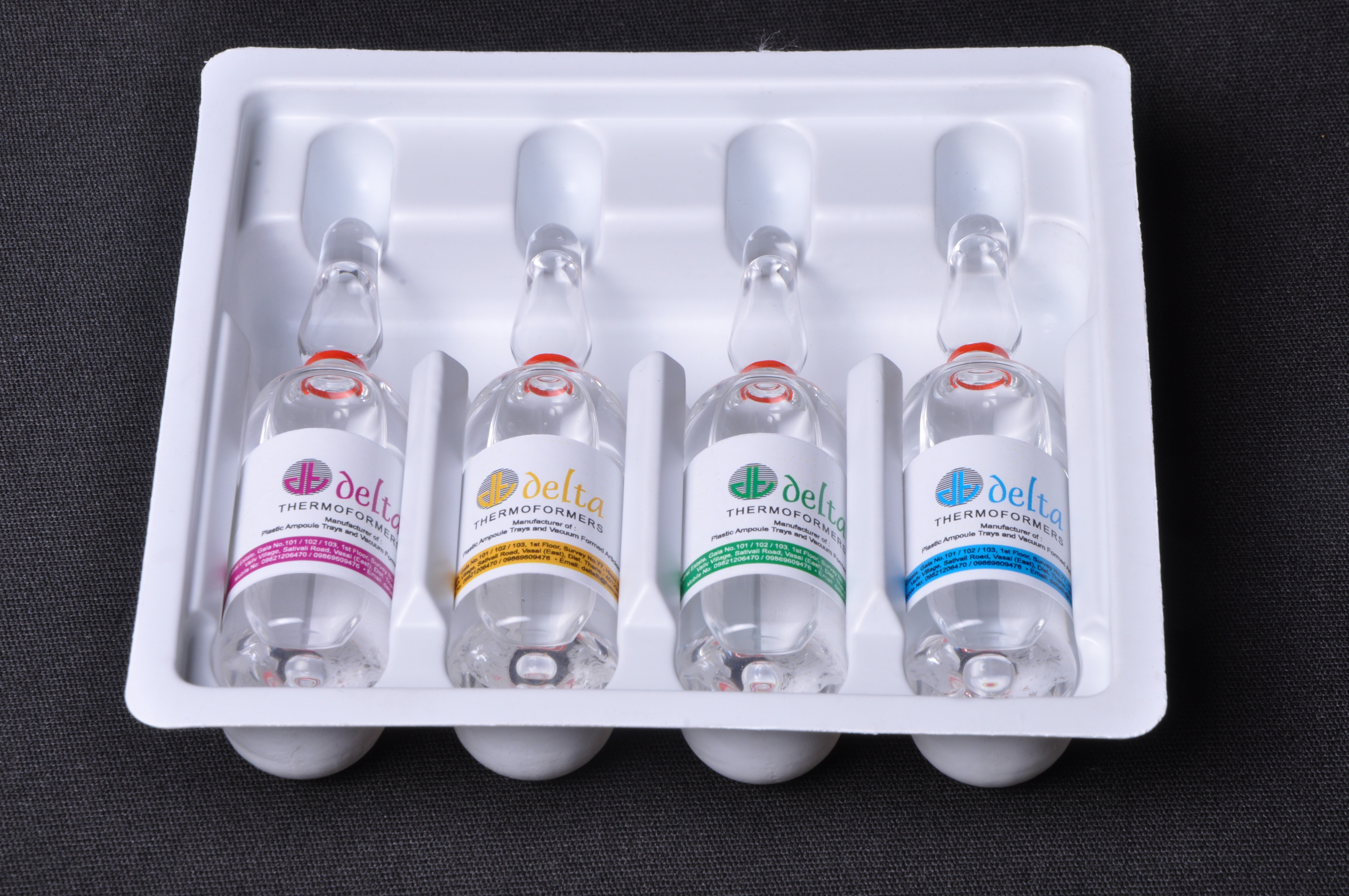• Plastic trays for vials, ampoules, injections, surgical kits etc